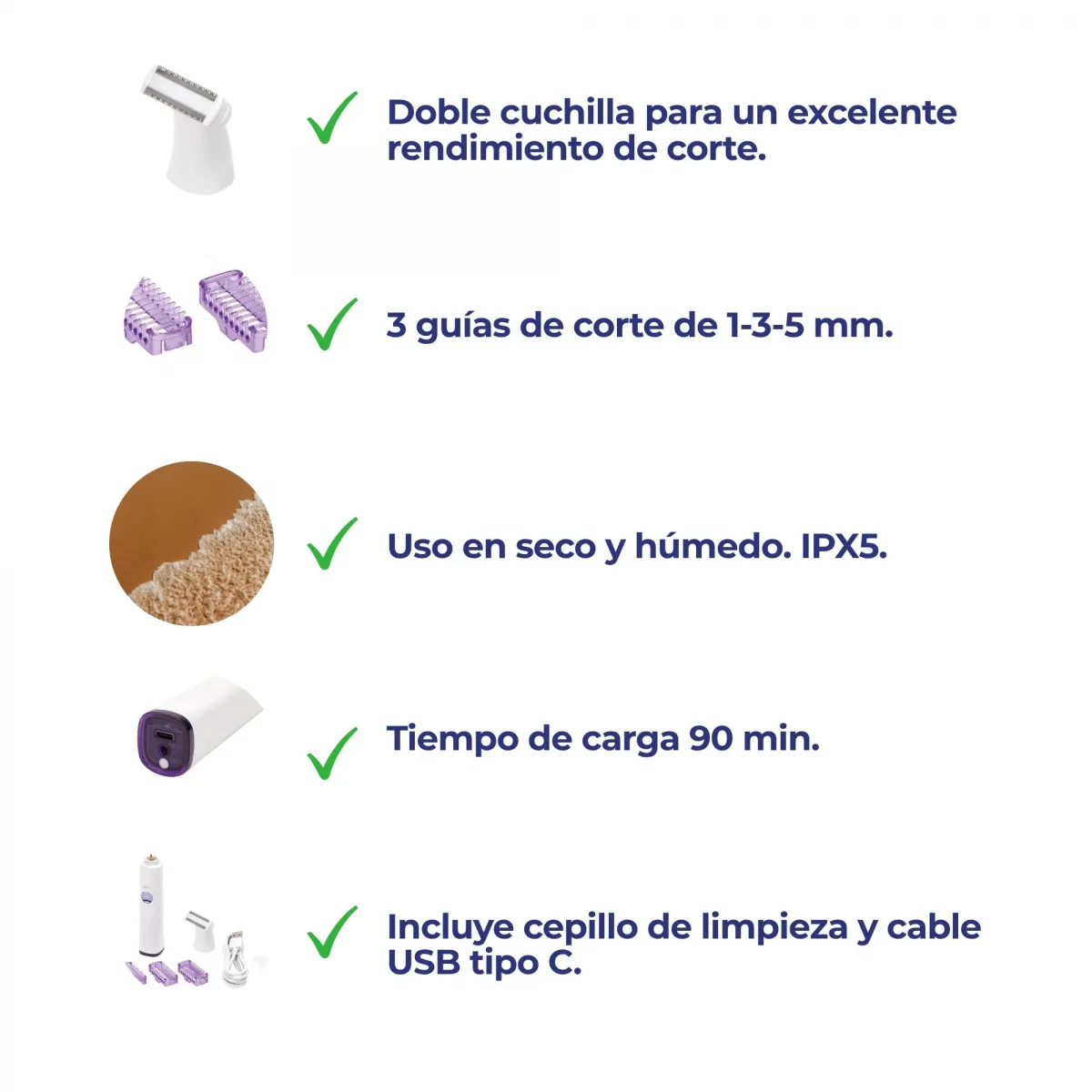 - Acessórios incluídos: escova para limpeza de lâminas e cabo USB tipo C.