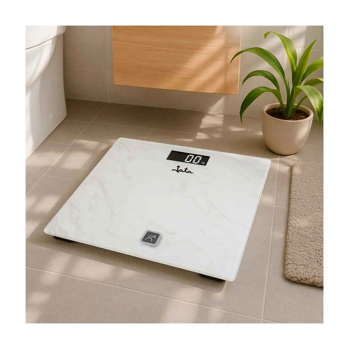 Balança electrónica Jata com base em vidro de segurança “temperado” de 6 mm de espessura para desfrutar com segurança Design SlimlineBase em vidro de segurança "temperado" de 6 mm de espessuraVisor grande “LCD”. 4 dígitos4 sensores. Alta precisão