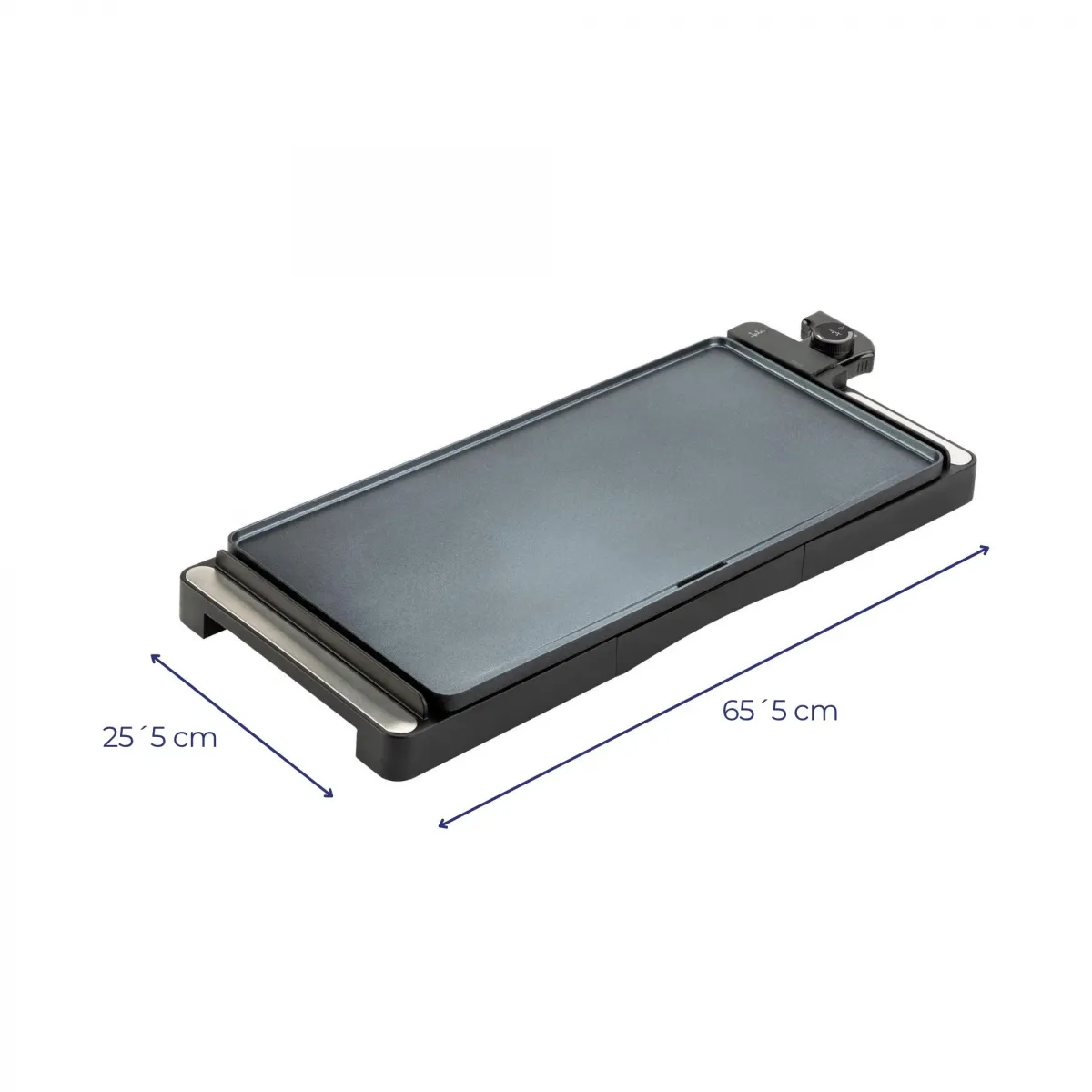 Grelhador elétrico XXL com revestimento antiaderente isento de PFOA. Com laterais em curva para facilitar o manuseamento e a recolha de alimentos. Revestimento antiaderente isento de PFOA. Xylan® Plus de Whitford.Grande resistência aos riscos.Tabuleiro para o molho.Fácil limpeza.