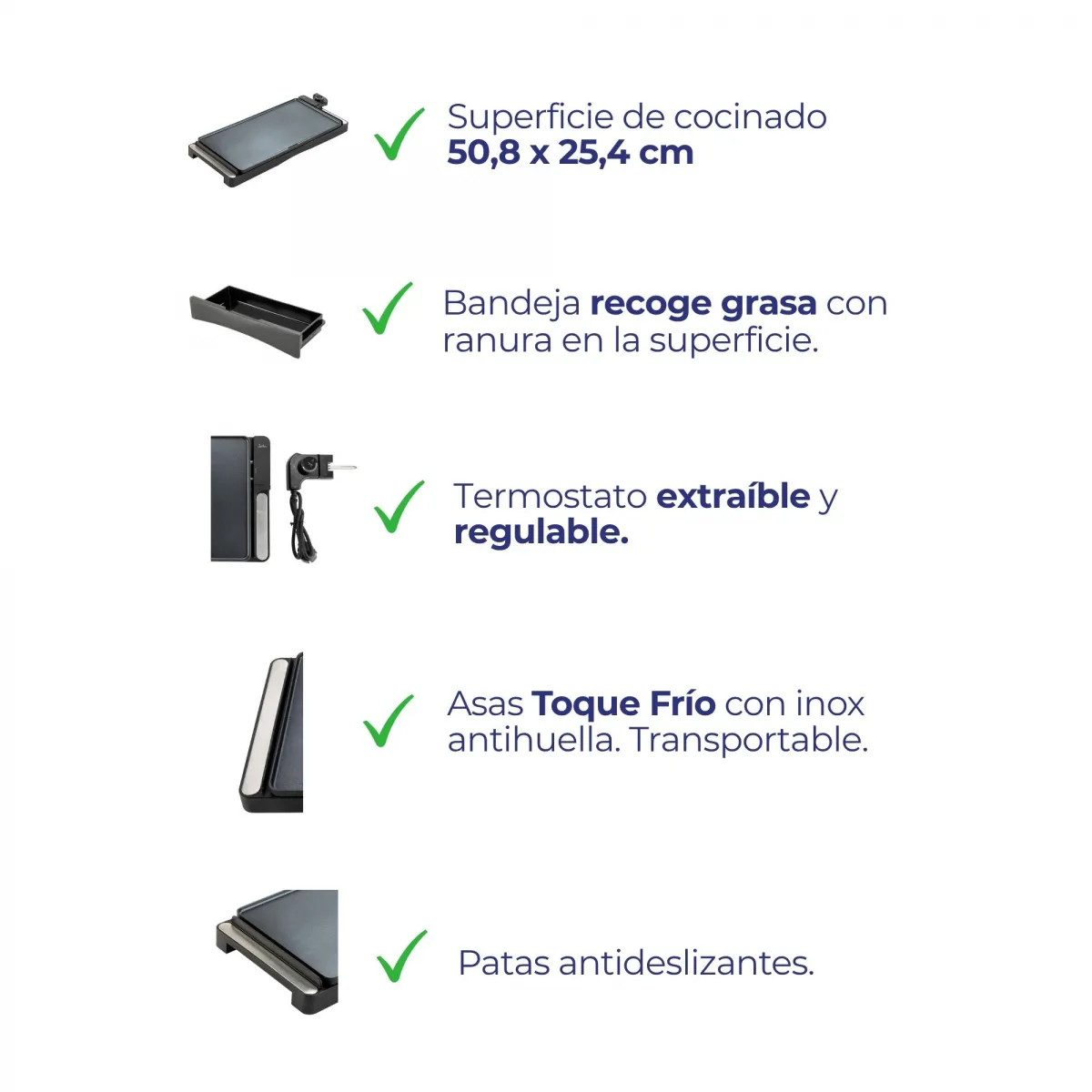 Pegas de toque frio Antiaderente Xylan® de Whitford. Superfície 35,6 x 25,4 cm. 2.000 W.