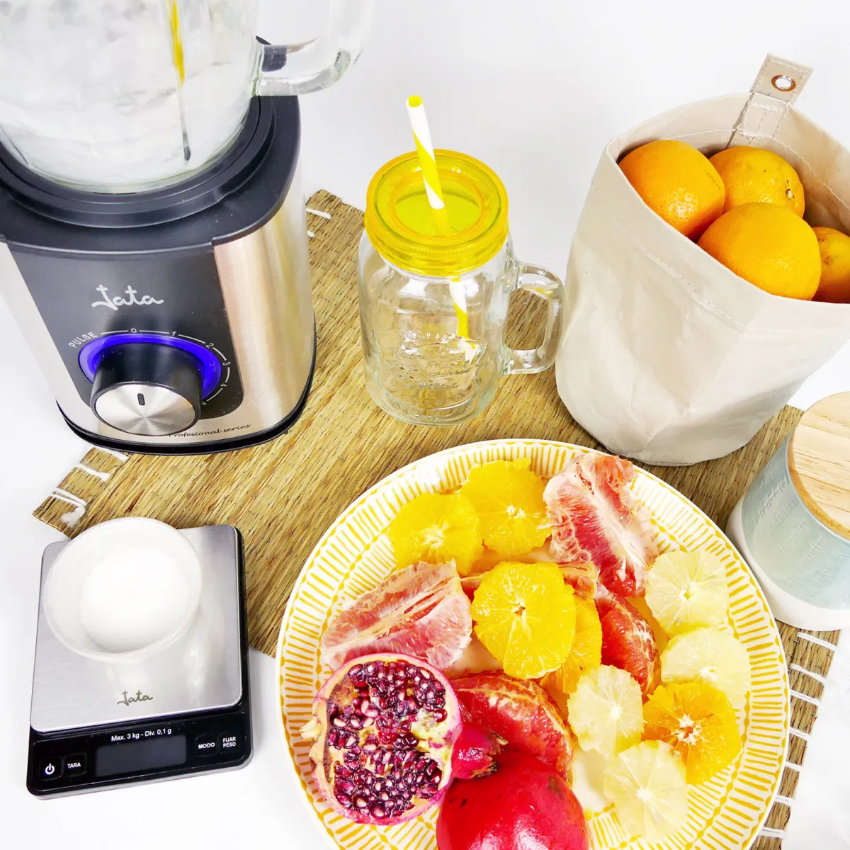 Liquidificador eletrônico de inox com jarra Tritan, leve e resistente. Prepara todo tipo de smoothies, molhos e picar gelo com suas funções automáticas