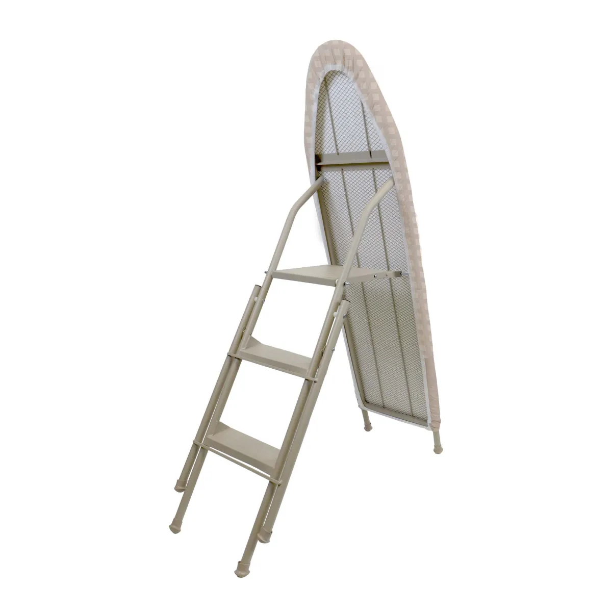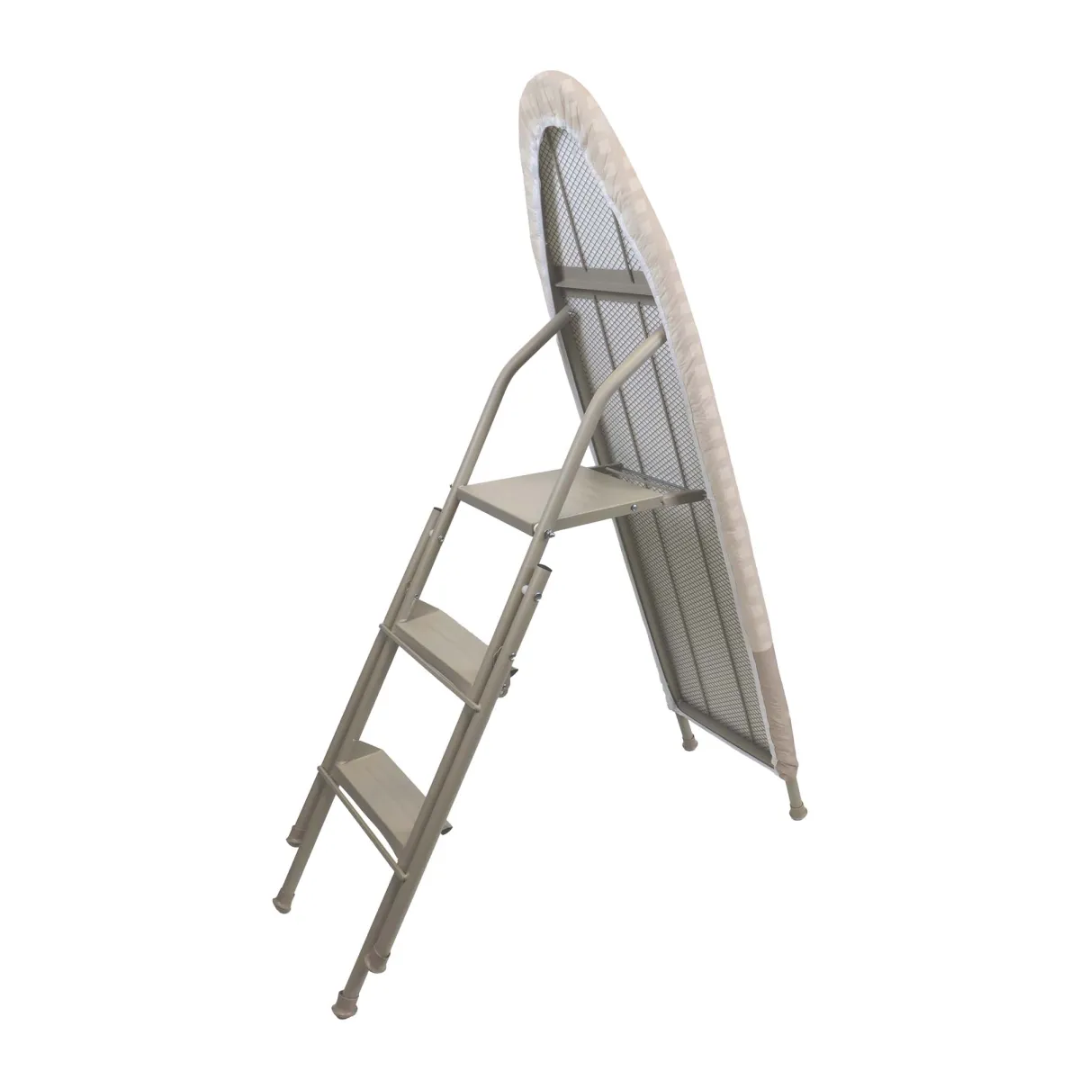 O escadote multifunção modelo 848N pode ser utilizado como tábua de passar a ferro ou como escadote com três degraus.