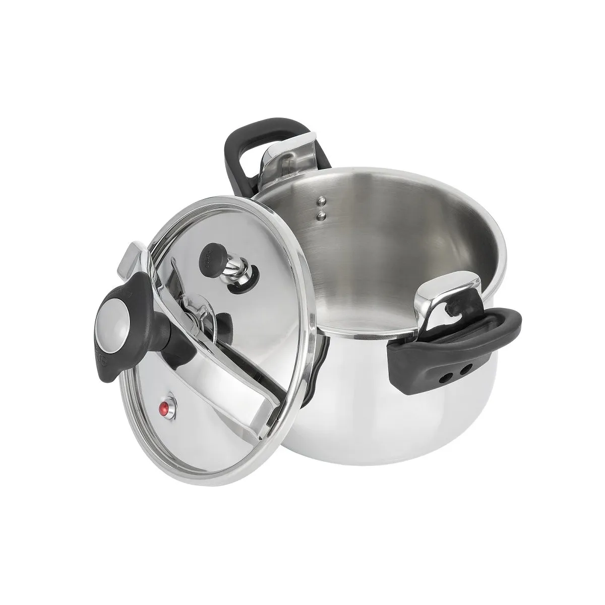 Asas e pegas em aço inoxidável com proteção de siliconeTampa de vidro de segurança “temperit”Adequadas para todos os tipos de placas, incluindo a de indução