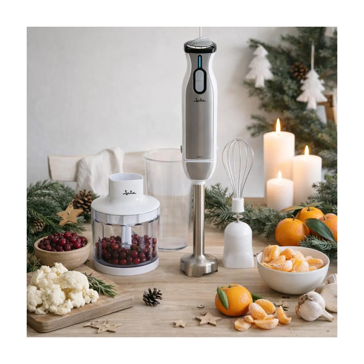 Misturador de vara com pé de aço inoxidável e design atraente. Potência de 400W e lâmina dupla de grande solidez