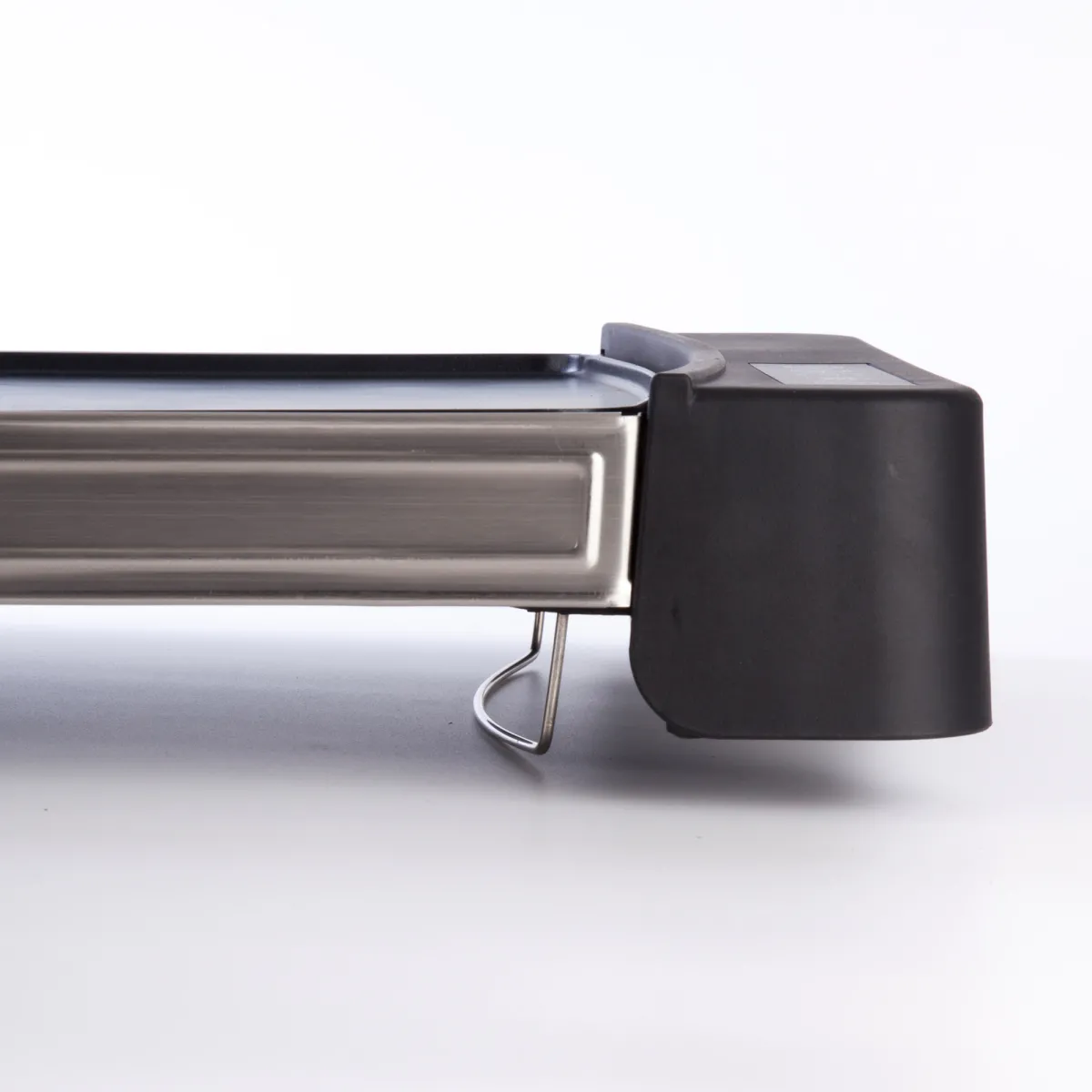 The GR217 electric roasting plate is highly scratch-resistant. It has a wide 55 x 26cm, non-stick, PFOA-free surface