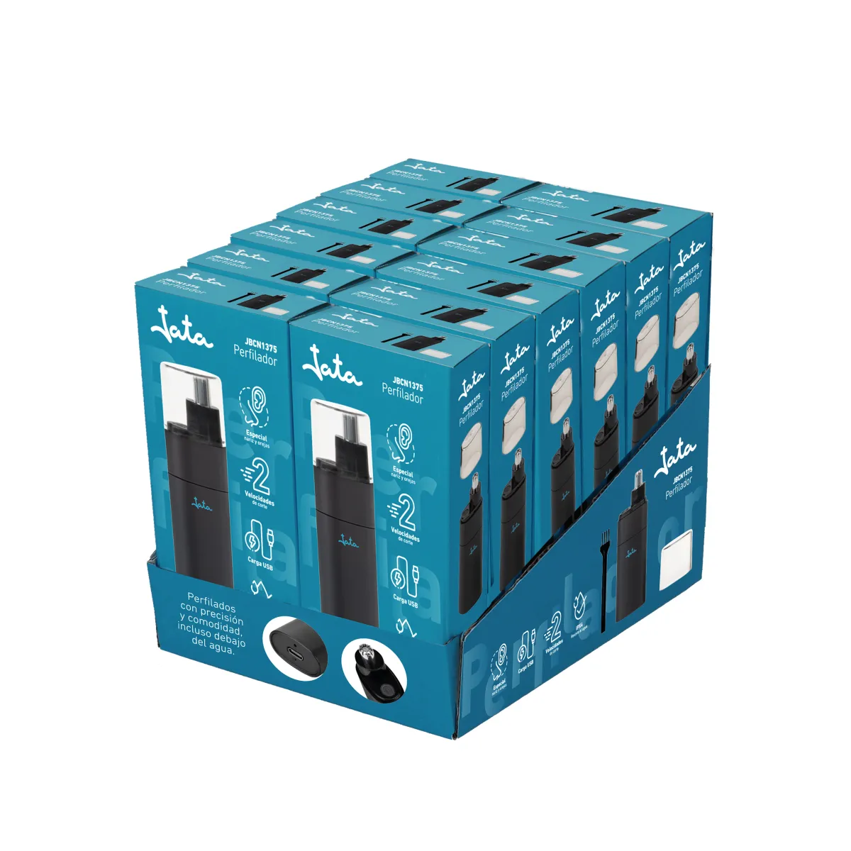 Trimmer for nose, sideburn and ear. Suitable for use in the shower with a light and ergonomic design