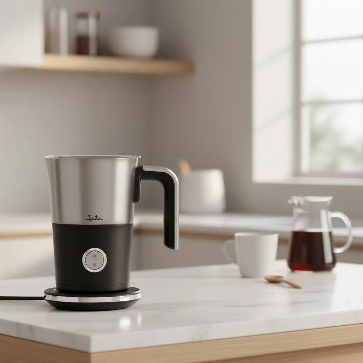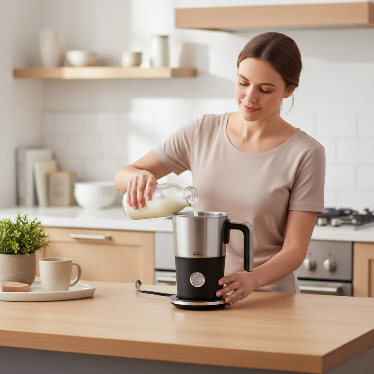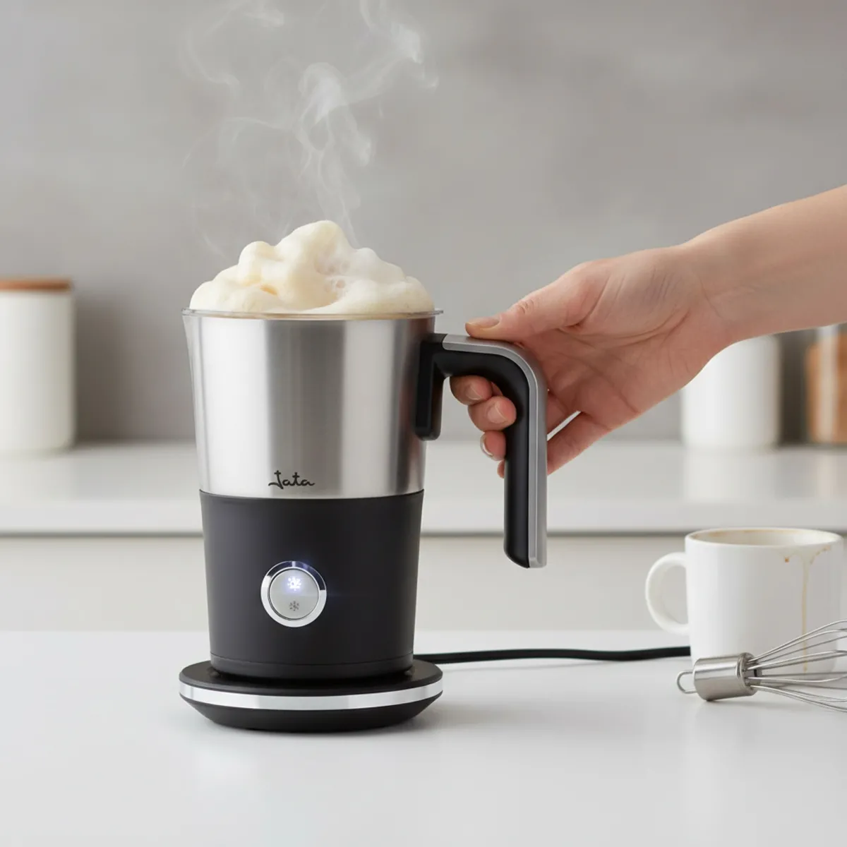 Milk heater ideal for heating milk and preparing cups of hot chocolat. It maintains a temperature of 80 ºC and has capacity for one litre