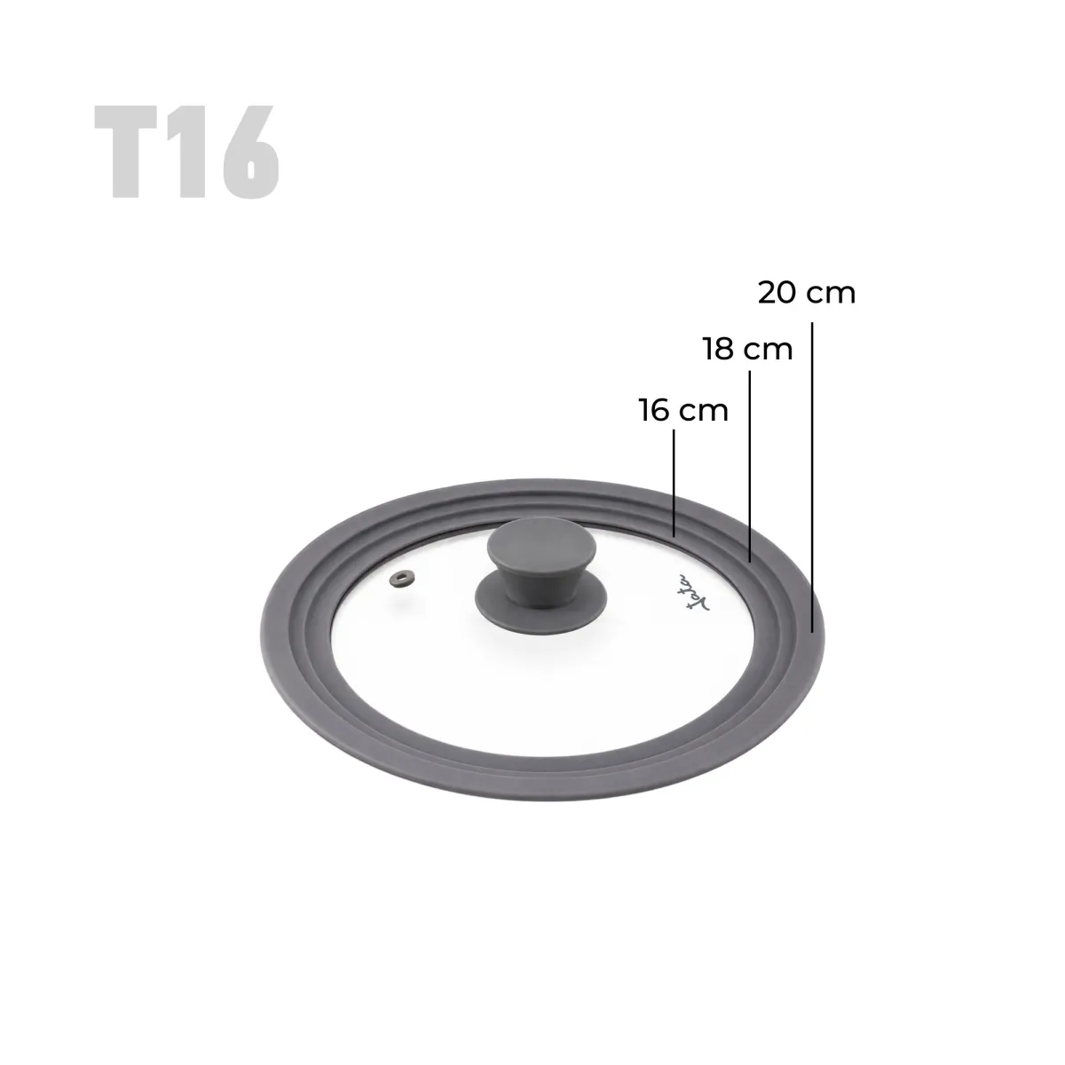 Silicone and ·temperit· glass lid, suitable for the microwave and dishwasher. Suitable for diameters of 16-18-20 cm