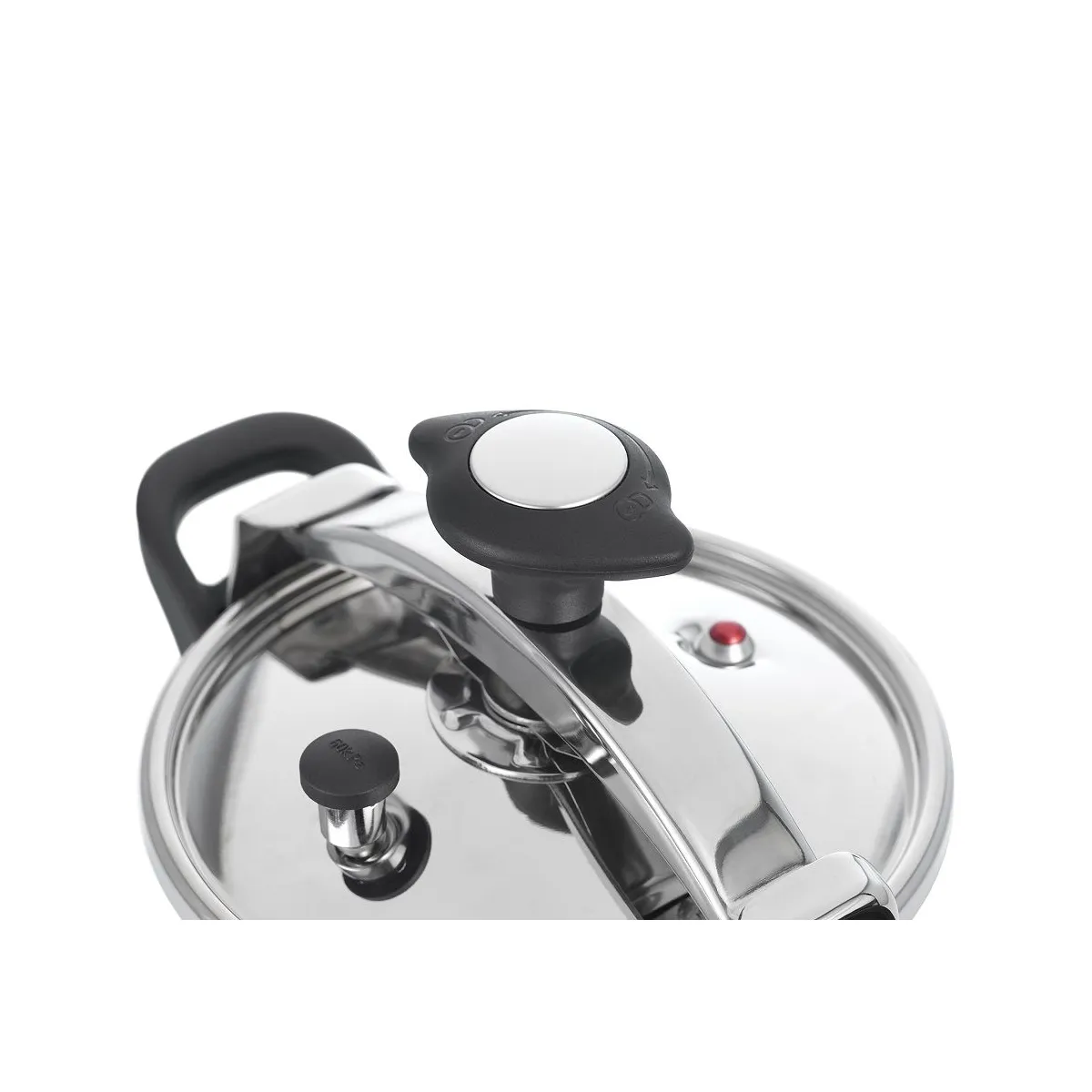 The “Classic” pressure cooker model OPC is made of stainless steel and has a progressive closure system using a turning handle.