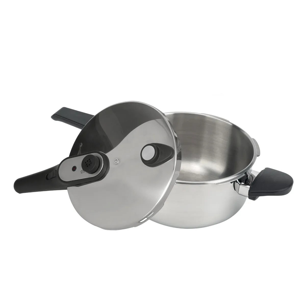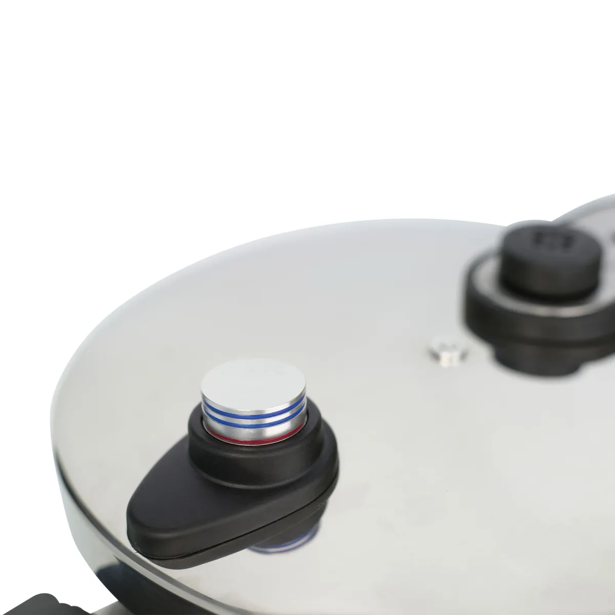 The “Classic” pressure cooker model OPC is made of stainless steel and has a progressive closure system using a turning handle.